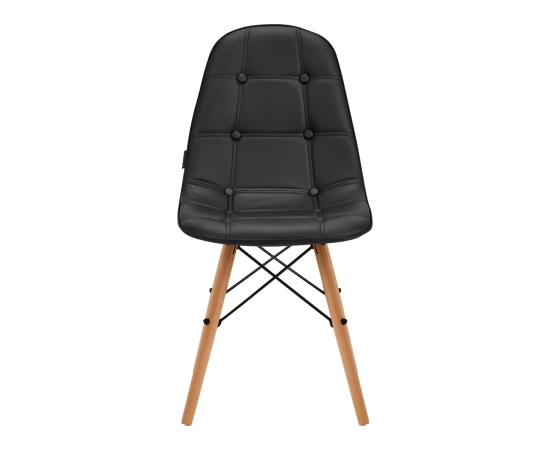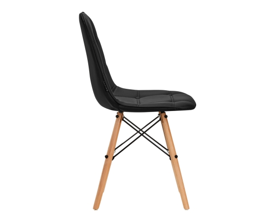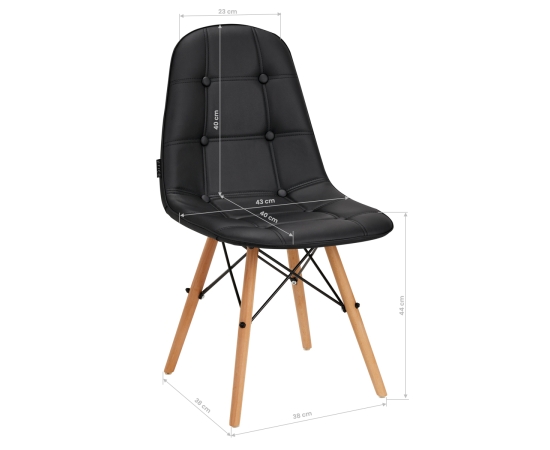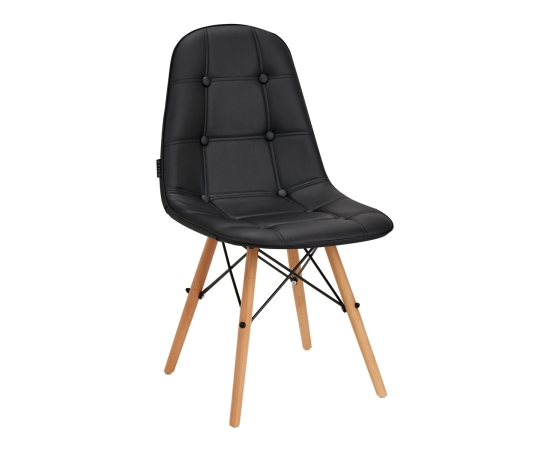 The seat is filled with foam and covered with upholstery made of pleasant-to-the-touch synthetic leather in shades of black, which is very easy to keep clean. Small stains and dirt can be easily removed with a slightly dampened cloth. Aesthetic quilting and careful stitching provide an elegant touch, while the metal frame in shades of black adds stability to the furniture. Matte-finished legs are finished with plastic protections, additionally protecting against accidental damage. The chair in the Scandinavian style is a comfortable piece of furniture that will become a decoration of the reception area of any beauty salon.