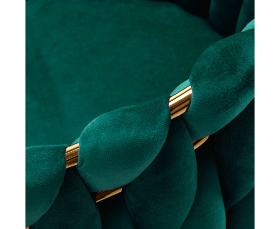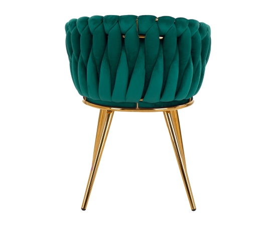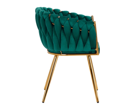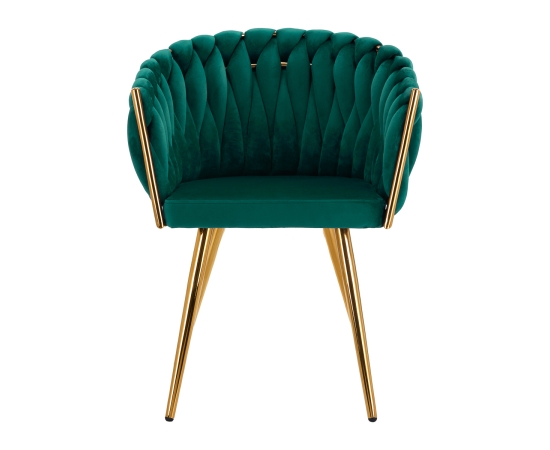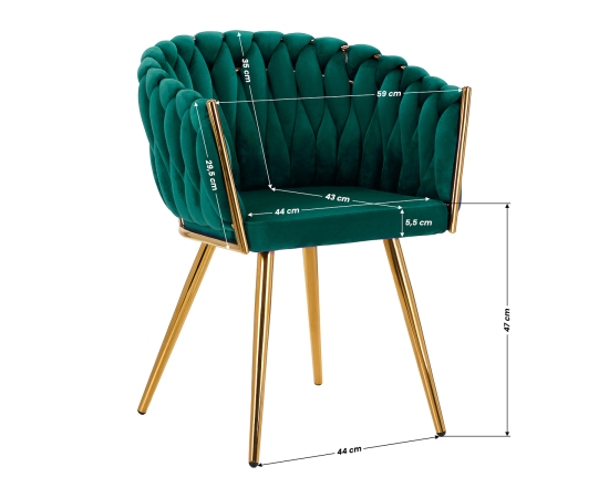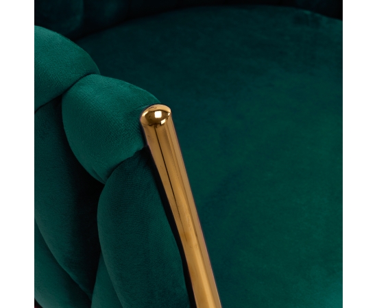 The pleasant-to-the-touch material, velvet upholstery in shades of green gives the chair a unique character, and the aesthetically interwoven fabric on the backrest emphasizes the unique appearance of the furniture. This gives it an exclusive look and ensures comfort of use. The frame in shades of gold adds elegance and prestige, perfectly matching the velvet. The elegant 4Rico chair is an exceptionally comfortable piece of furniture that will decorate the reception area of any beauty salon.