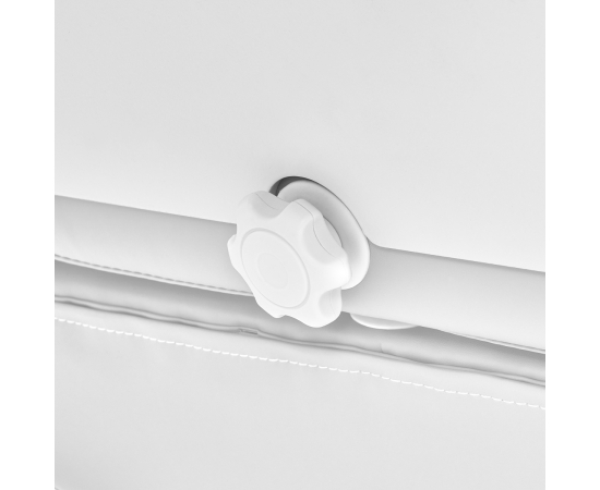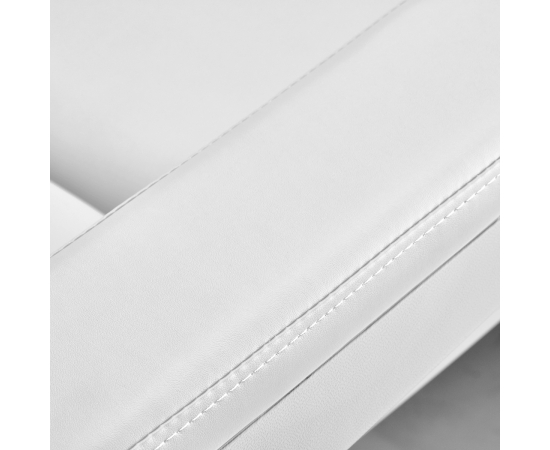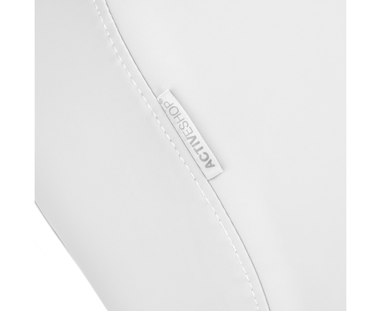 The chair is filled with foam of appropriate hardness and covered with pleasant-to-touch imitation leather in shades of white. Thanks to the use of a material that is easy to keep clean and resistant to selected disinfectants, the equipment is comfortable to use, resistant to moisture and easy to clean. A solid base made of durable white material ensures stability during treatments. Properly profiled hems give the chair a stylish look and make the seat ergonomic.