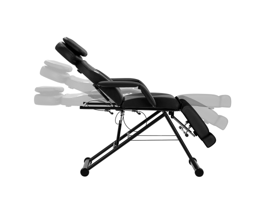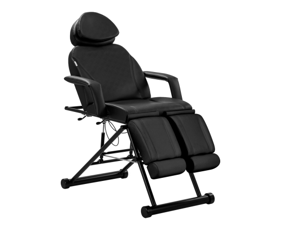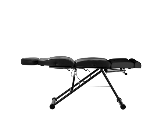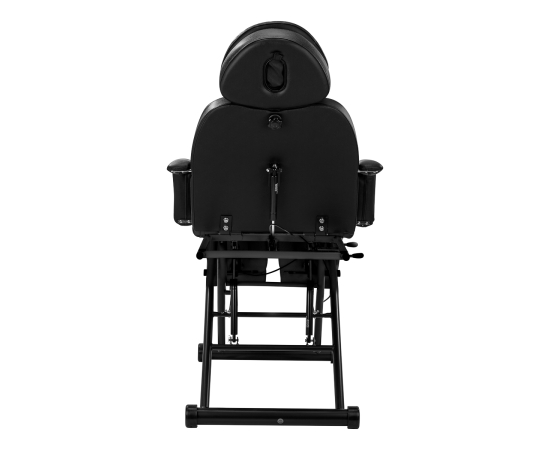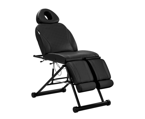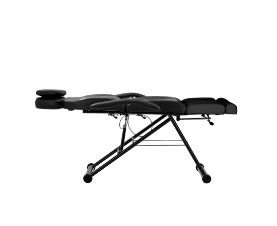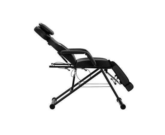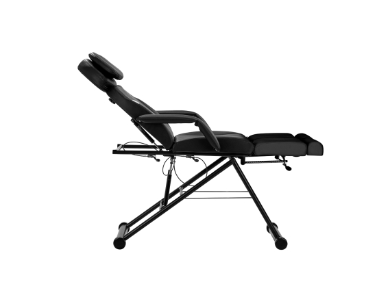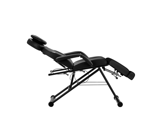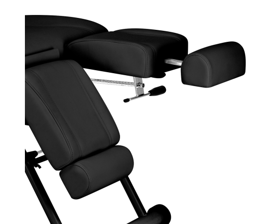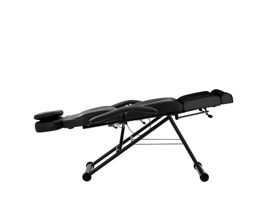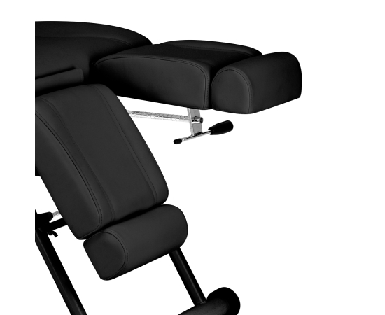 The base of the chair has a fixed height, so the seat is at a constant level, which should ensure comfort during use. The solid metal frame in shades of black provide the necessary stability during use. The headrest, which extends by about 15 cm, provides excellent head support, regardless of the customer's height. This allows you to freely perform various types of treatments, including cosmetology, physiotherapy and tattooing.