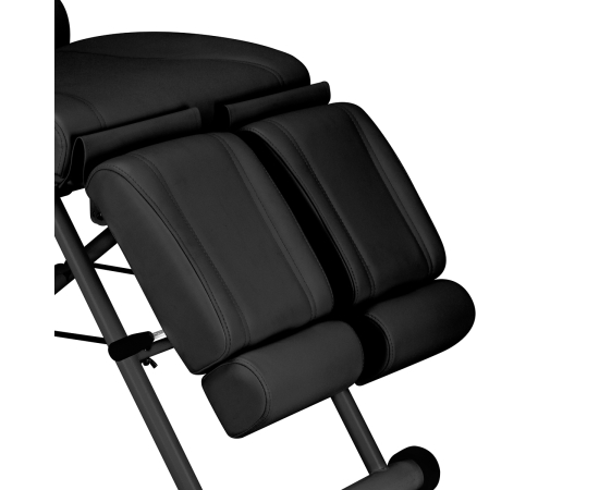 The opening in the headrest hidden under a properly profiled pillow makes the chair perfect for both facial and body treatments. Stable armrests guarantee the user adequate support. These elements, divided in half, are movable, so they fit well when changing the position of the backrest, and can also be easily removed, making it easy to take a seat.
