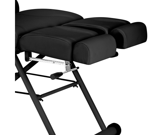 The adjustment of the angles at which the footrest and backrest are located is provided by a special mechanism. Using manual levers, you can freely adjust the positioning of the chair. This allows for optimal setting to suit individual needs, for proper and convenient performance of treatments and high comfort of use. The chair can be unfolded to a couch position, reaching a maximum length of over 2 m, which significantly increases its functionality, and together with the opening in the headrest, this ensures the freedom to perform facial and body treatments.