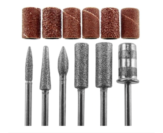 A készlet 6 db csiszolófejet tartalmaz, amelyek bármelyik elektromos műköröm csiszológépre felszerelhetők.