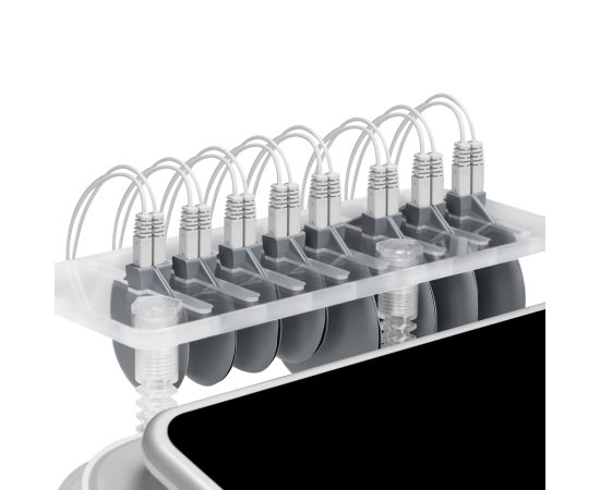 The LCD display allows precise monitoring and smooth adjustment of individual treatment parameters, tailoring them to the user's needs. On the screen, you can monitor the duration of the treatment, set intervals and adjust the intensity of individual electrodes, which provides full control over the therapeutic process. The device has been ergonomically designed, and its intuitive screen allows easy adjustment of the intensity of electrostimulation. Additionally, a practical shelf made of transparent plastic for electrodes increases the convenience of using the device.