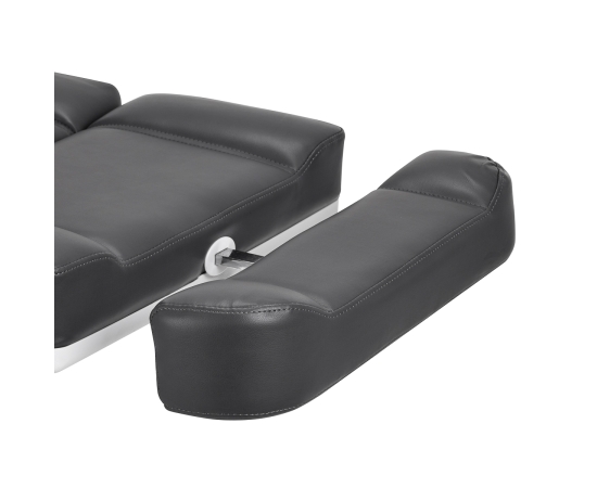 The opening in the headrest is perfect for services during which the client is positioned upside down (e.g. massages). The set includes a cover for the hole in the headrest and a comfortable pillow, which make it easier to carry out a wide range of treatments for both the face and body. The armrests are movable, can be set in a vertical position or flipped 180º, and are easily removable, which facilitates direct access to the client.