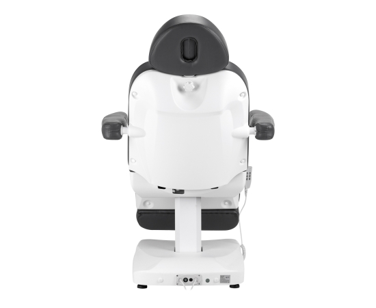 Using the remote control, the chair can be adjusted in three dimensions – it has electric adjustment of height, backrest and footrest. The seat can be adjusted to a height of 64 to 90 cm, and when fully extended, the chair reaches a length of over 2 meters. Additionally, the chair has an adjustable headrest and footrests (maximum extension of both elements by +/- 17 cm). These dimensions allow for easy use of the equipment by people of different heights and make it possible to be adapted to the needs of both the client and the person performing the procedure. The handle located on the right side of the seat allows you to hang the remote control so that it is always at hand.