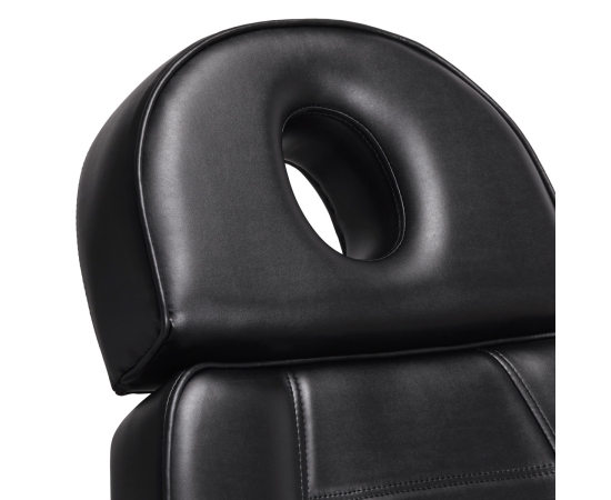 The headrest is extendable, which helps to adjust the equipment to the needs of users of different heights, providing stable support for the head during treatments. A hole in the headrest hidden by a plug and the possibility of freely unfolding the equipment to the position of a couch, which significantly increases its functionality for face and body services. This allows for unproblematic performance of various types of treatments, including cosmetics, physiotherapy or tattooing. The applied solutions significantly improve the comfort of use and work ergonomics.