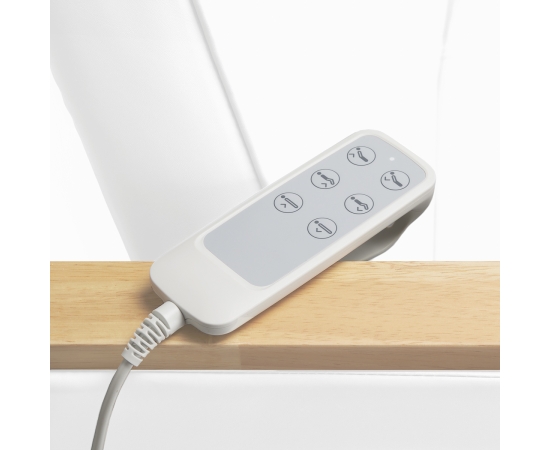Using an intuitive remote control, the chair can be smoothly adjusted in three planes – it has adjustable height and angles of the backrest and footrest. This allows you to freely set the position according to the procedure being performed at the moment, which affects both the comfort of the user and the practitioner.