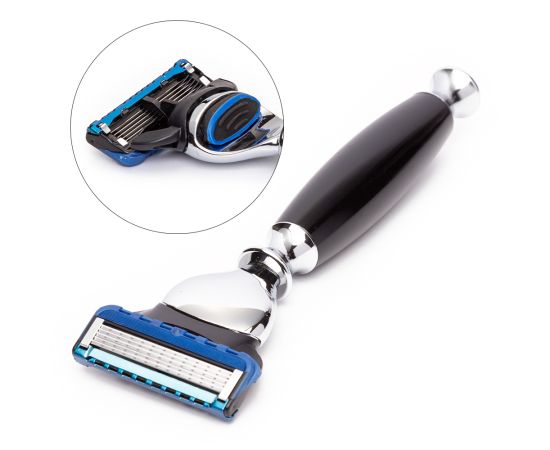 A "Royal Black Modern" borbélykészlet a Yoshimoto-tól, kiváló minőségű. Az erős, de ugyanakkor a megjelenésre is odafigyelő férfiaknak készült, akik értékelik a stílust.