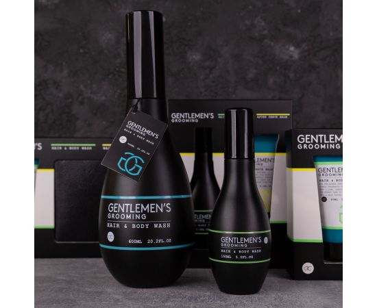 Férfi ajándék szett, tusfürdő, 150ml hair & body wash GENTLEMEN'S GROOMING in pin shaped bottle, fragrance: Cool Mint & Lime, col. black/white/mint, kozmetikai szettek