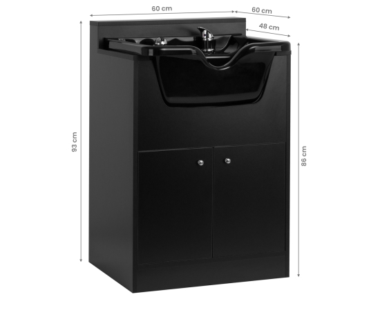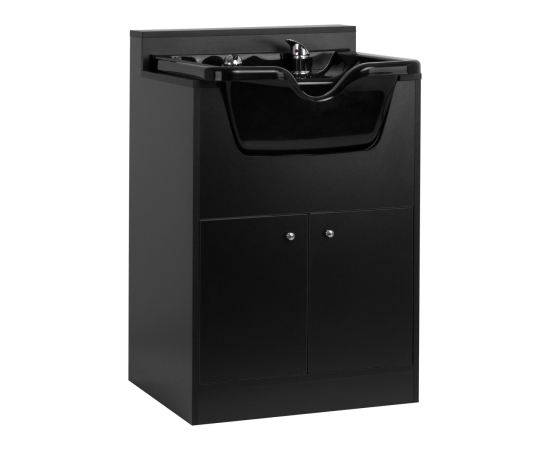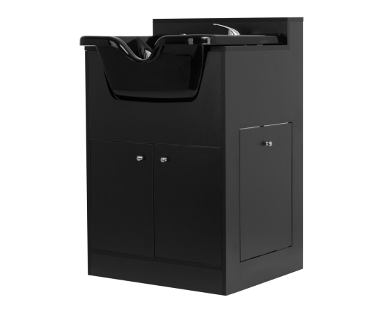 Gabbiano barber shop with a cupboard. Especially recommended for barbershop and small salons, where skilful space management is important. A perfectly shaped, ceramic bowl allows the client to comfortably position his head and enjoy one of the most pleasant treatments in a hairdressing salon.