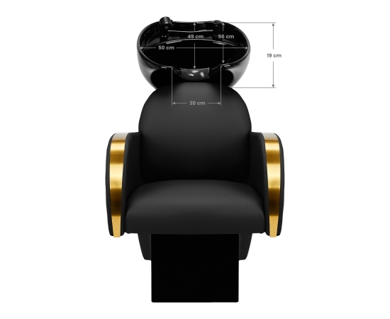 A properly profiled chair filled with durable foam ensures high comfort of use and elegant armrests allow for the correct positioning of the client's shoulders. The backrest is placed at an optimal angle to allow you to take the right position and promote excellent spine support. Coverage in shades of black and decorative metal surfaces lacquered in gold colors give it a timeless elegance and in addition guarantees long-term durability and ease of cleaning. Distinctive hair wash unit classic finish makes it look great in almost any space. The set includes complete fittings in shades of black, including a faucet, shower head and dedicated hoses to provide a complete set of tools for work.