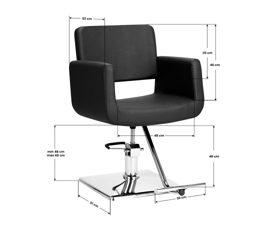a modern hairdressing chair with a unique design, perfectly suited to modern salons. specially contoured to provide the client with a comfortable position during the treatment. adjustable in the vertical plane. very stable. upholstery made of high-quality, smooth eco-leather. black color.