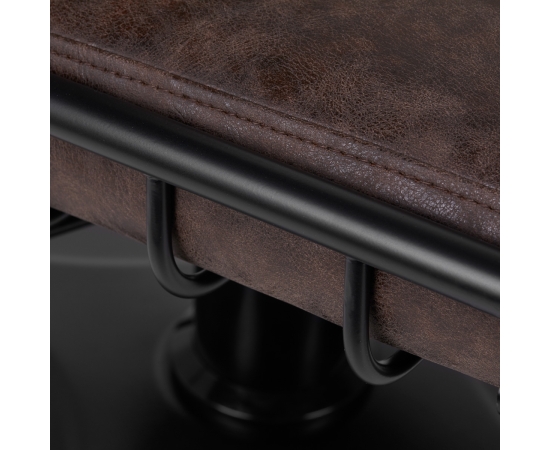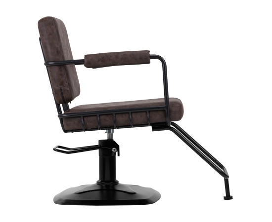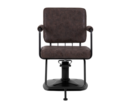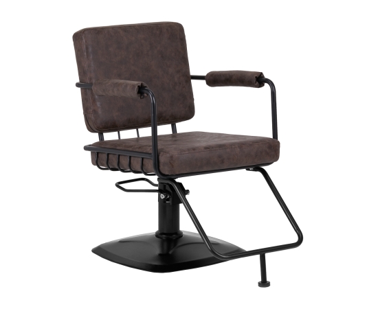 Loft-style piece of furniture is filled with durable, deformation-resistant foam, and the upholstery is made of pleasant-to-touch synthetic leather in shades of brown. The materials used ensure comfortable use of the furniture for a long time and make the equipment resistant to moisture, durable and easy to clean. Metal elements in shades of black give it an expression of raw elegance. The modern Gabbiano Katania Loft hairdressing chair is distinguished by a minimalist design, which gives it a unique character and makes the chair look great in many hairdressing salons.