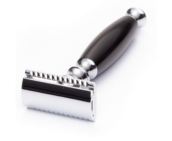 A dupla borotva ugyanolyan gondosan megépített, krómozott fémből készült, fogantyúja tökéletes egyensúlyt biztosít, a pengék pedig azt a pontosságot adják, amire mindig is vágyott.