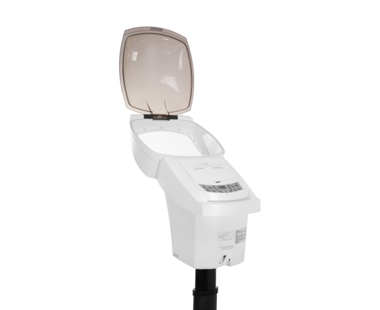The easy-to-use device uses water vapor, which facilitates the absorption of conditioning substances and makes the hair soft and highly moisturized. The heat released from the water vapor stimulates microcirculation of the scalp and facilitates the transport of essential nutrients. This increases the comfort and satisfaction of the client undergoing treatment. The use of such a solution also has a positive effect on the scalp, and the hair becomes stronger and has less tendency to fall out. The device is equipped with a tank with a capacity of almost two liters for clean water and a smaller collecting container for water that condenses during treatments. The sauna is equipped with a system that informs about the lack of water in the tank with a message on the screen and a characteristic sound. The set also includes a special cap with a drawstring that makes it easier to direct steam to the hair.
