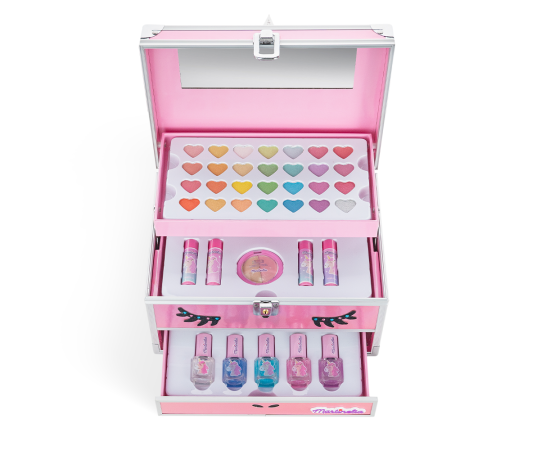 A Martinelia kozmetikai készlet a legszebb ajándék lehet a divat és smink iránt rajongó kislány számára. Járuljon hozzá egy kis hölgy boldogságához, felajánlva neki a legszebb kezdést a sminkelés területén. Minőségi és gyerekeknek ártalmatlan szett minden lánynak megfelelő, nem allergiás anyagokból készült és a legkisebbek is használhatják.
