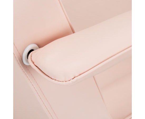 The chair is filled with foam of the right firmness and covered with semi-matte imitation leather in shades of pink. Thanks to the use of such material, the equipment is comfortable to use, resistant to moisture and easy to clean. Properly profiled hems give the seat an ergonomic shape. The solid construction guarantees durability and stability. Simple design and classic colors allow it to fit into any interior.