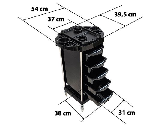 Mozgatható, nagyon tágas, bármely fodrászatban praktikus bútordarab. Több tárolóhellyel rendelkezik.