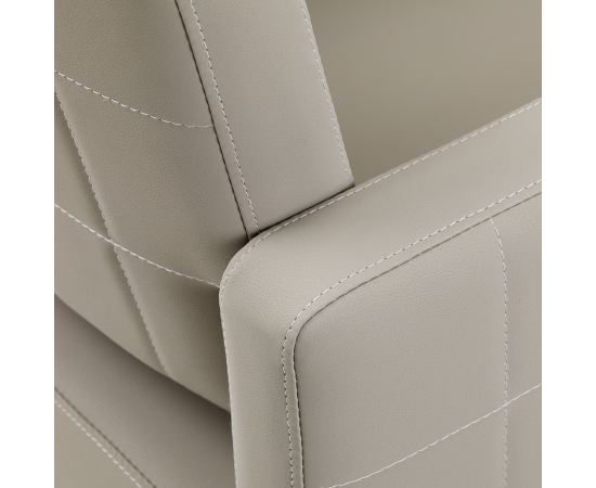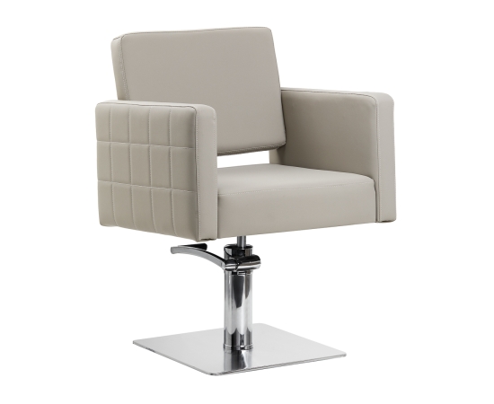 The comfortable armchair is filled with durable and deformation-resistant foam, which ensures long-term use, high comfort and convenience even during many hours of treatments. The upholstery is made of pleasant-to-touch synthetic leather, and the use of such material makes the equipment resistant to moisture, durable and very easy to clean. Cover in shades of gray along with visually interesting elements give it a unique character. The equipment is distinguished by an elegant design, which makes the chair look great in many hairdressing salon interiors.