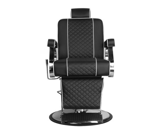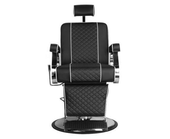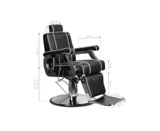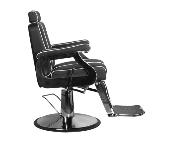 The chair's comfortable seat is covered with high-quality eco-leather, adding a touch of luxury to every experience. The wide chrome base guarantees stability during salon operations, ensuring a seamless and comfortable grooming session for your clients.
