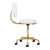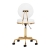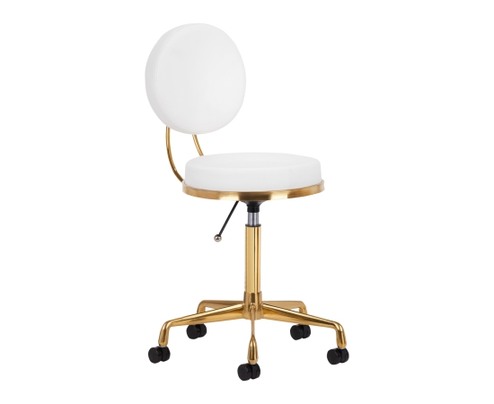 This golden and white stool has a comfortable seat and a backrest covered with ecological leather. It is supported by a stable five-leg base. Made of metal parts, it is durable and resistant to damage. The seat height is efficiently regulated. Plastic wheels allow you to easily change the position. The seat is fully rotatable.