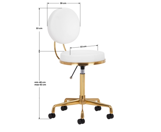 It is a great stool both for a beauty salon or a hairdressing salon, as well as for home use. Gold metal elements have a matte finish. It is elegant and looks good anywhere. The ACTIVESHOP cosmetic stool has a 12-month warranty.
