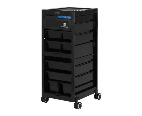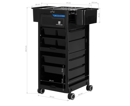 The professional hairdresser's helper Gabbiano 68UV with UV sterilizer is an extremely useful element of beauty salon equipment that will improve work and allow to take care of proper order and organisation of the workplace. Thanks to the practical arrangement of products, the most necessary ones will always be at hand. The enclosed back panel prevents the drawers from accidentally being pulled out the other way, which could result in damage to the utensils inside.