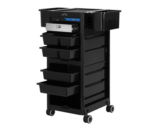The simple style of the helper makes it suitable for any interior. Made of easy-to-clean, durable material, this piece of furniture in shades of black will significantly improve the work in any beauty salon. Rubberised wheels provide mobility, allowing it to be moved freely and smoothly depending on the needs – whether during treatments around the hairdressing chair or putting it away after the service. They can also be easily dismantled if necessary. This helper will prove especially useful for those who highly value functionality.