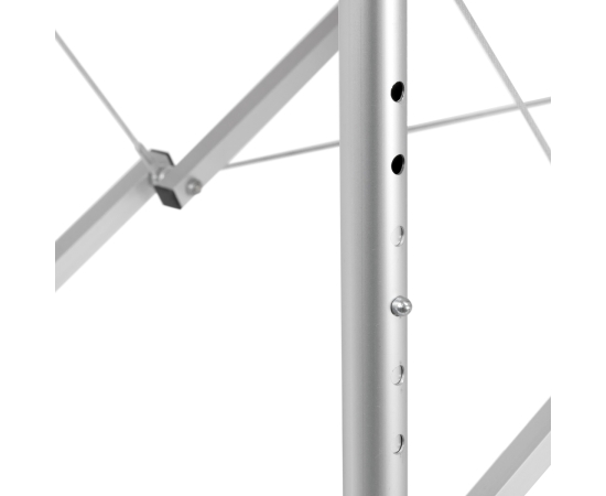 The height can be adjusted to suit the height and individual needs of the person performing the procedure using a telescopic adjustment with a locking mechanism. Each of the table's aluminum legs consists of two tubes, which, after unlocking, can be freely moved relative to each other. The Fast Lock mechanism holds components in chosen position when the lock is placed in the appropriate hole. In addition, the structure of the frame is stabilized with metal cables, which makes the massage table solid and perfect for a wide range of services.