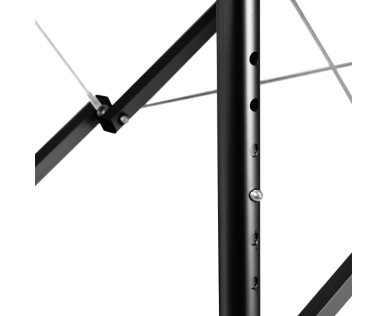 The height can be adjusted to suit the height and individual needs of the person performing the procedure using a telescopic adjustment with a locking mechanism. Each of the table's aluminum legs consists of two tubes, which, after unlocking, can be freely moved relative to each other. The Fast Lock mechanism holds components in chosen position when the lock is placed in the appropriate hole. In addition, the structure of the frame is stabilized with metal cables, which makes the massage table solid and perfect for a wide range of services.