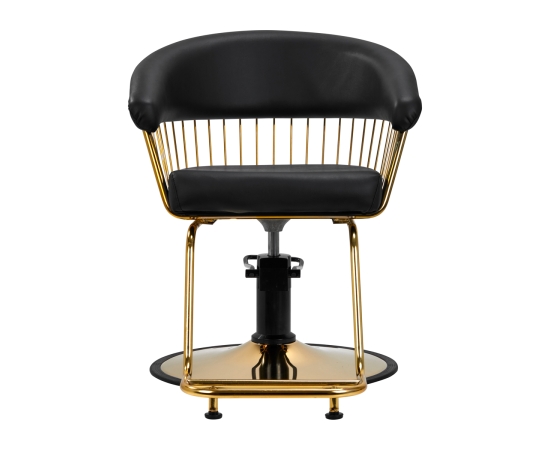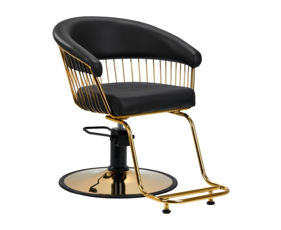 The elegant Gabbiano Lille-M hairdressing chair with a practical hydraulic lift is a functional piece of furniture that will become an adornment of any hairdressing salon. Classic colors, interesting design and decorative elements in shades of gold give it a tasteful look. High functionality will ensure comfort for both hairdressers and its users.