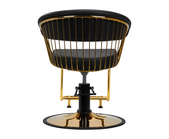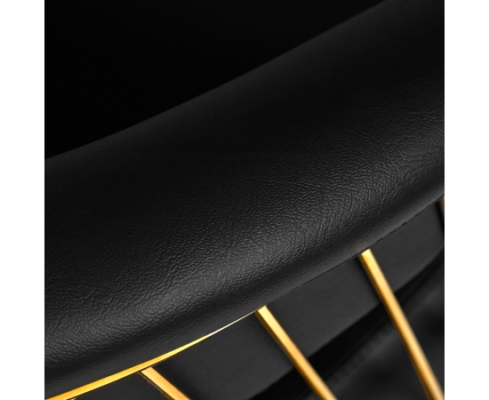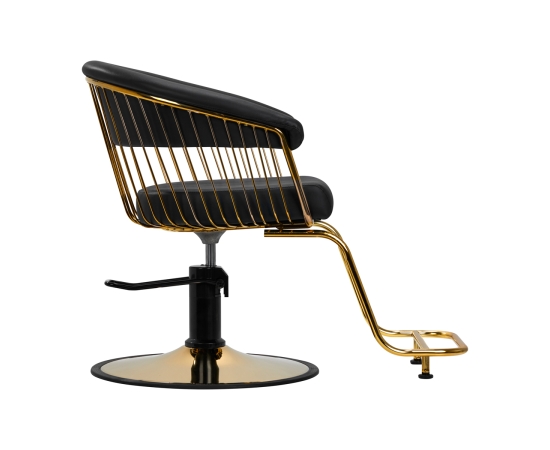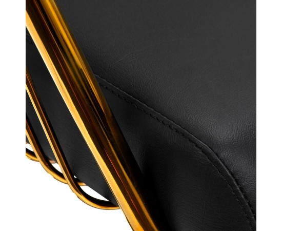 The durable hydraulic lift allows you to adjust the seat height within 48-55 cm, even when the customer is sitting on the chair. This guarantees more ergonomic work, thanks to the ability to freely adjust the level of the chair to the height of both the client and the hairdresser and the option of full rotation. The perfectly profiled backrest covered with synthetic leather allows you to take a comfortable position. This provides adequate support for the back, which is especially important for treatments lasting many hours. A visually interesting element here is a metal, polished, sophisticated detail in shades of gold connecting the backrest with the seat. The spaces created make it easier to keep the salon clean, allowing you to easily sweep hair from every nook and cranny of the chair. This saves time preparing the workstation between clients.
