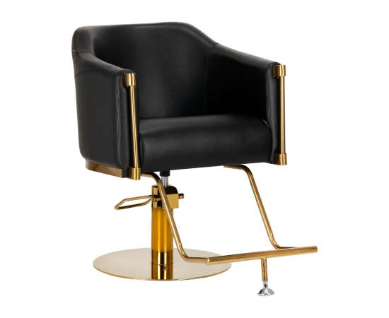 The Gabbiano Burgos hairdressing chair equipped with a hydraulic lift is a practical piece of furniture that will become an embellishment of a hairdressing salon. The classic color scheme, dedicated footrest and decorative elements in gold tones give it an elegant look. High functionality will provide comfort for both hairdressers and its users.