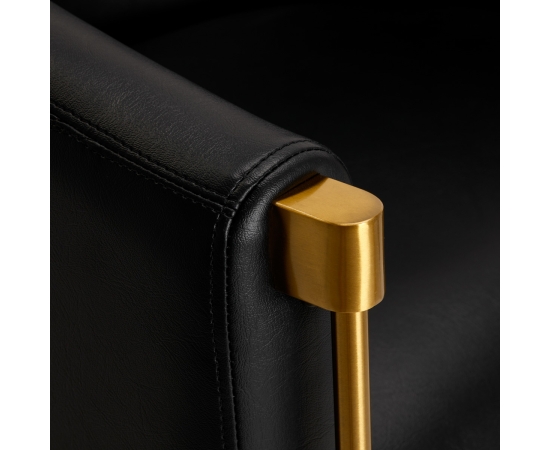 The chair is filled with foam, which is durable and does not deform, ensuring comfortable use for a long time. The upholstery is made of pleasant-to-the-touch imitation leather with a specific structure. Thanks to the use of such material, the equipment is resistant to moisture, durable and easy to clean. The covering in shades of black and decorative elements in gold hues give it an expression of timeless elegance. Its distinctive classic finish makes it look great in almost any space.