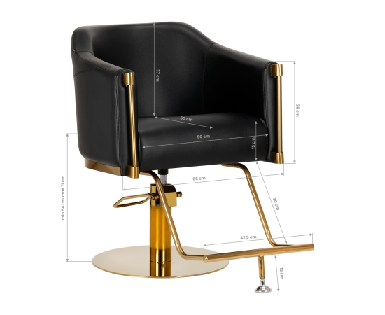 A durable hydraulic lift allows the height to be adjusted within 54-71 cm, even when the customer is sitting on the chair. This guarantees more ergonomic work, thanks to the ability to adjust the seat level to suit the height of both the client and the hairdresser. The properly profiled, rounded backrest allows to take a comfortable position, which is important especially for treatments lasting many hours. A significant plus is a chic footrest matched to this model, which provides stable support for the user's feet.
