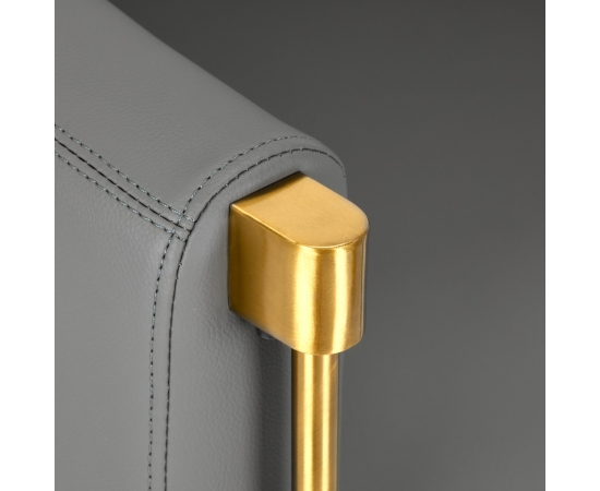 The chair is filled with foam, which is durable and does not deform, ensuring comfortable use for a long time. The upholstery is made of pleasant-to-the-touch imitation leather with a specific structure. Thanks to the use of such material, the equipment is resistant to moisture, durable and easy to clean. The covering in shades of gray and decorative elements in gold hues give it an expression of timeless elegance. Its distinctive classic finish makes it look great in almost any space.
