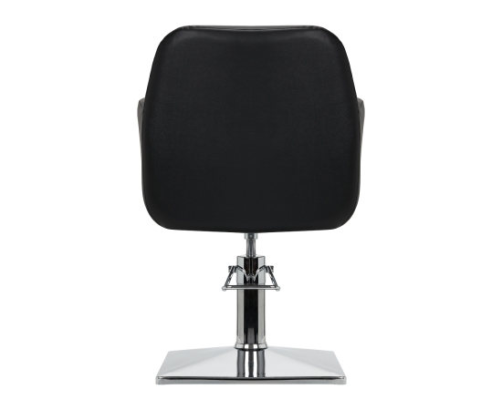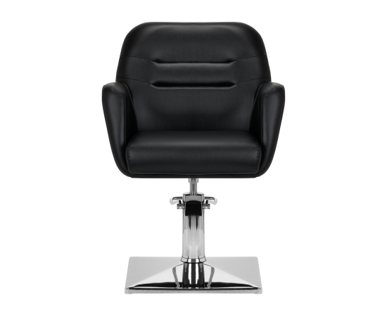 A solid base guarantees stability during use. The smooth surface with a mirror finish makes this element easy to keep clean. The seat with foam filling ensures high comfort of use and convenience even during many hours of treatments. The full rotation mechanism makes the hairdresser's work more effective and comfortable. Armrests located at the appropriate height allow for the correct positioning of the client's shoulders – this means that he does not hide his head in his shoulders or slouch – clearly facilitating the precise performance of treatments, including haircuts.