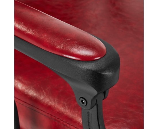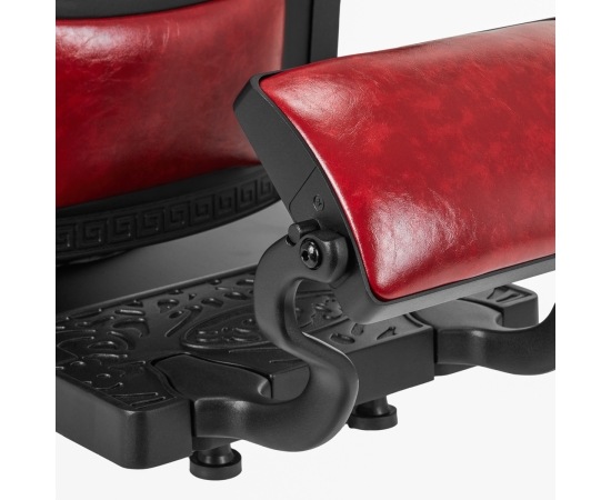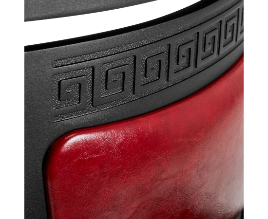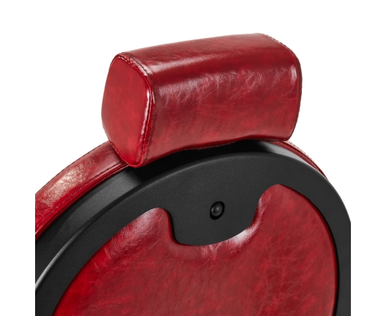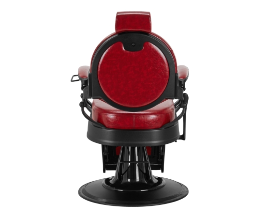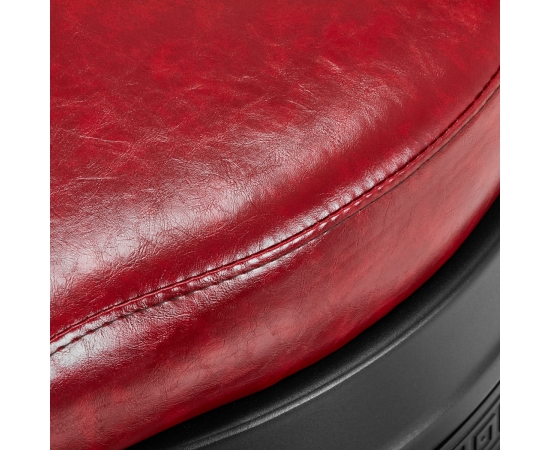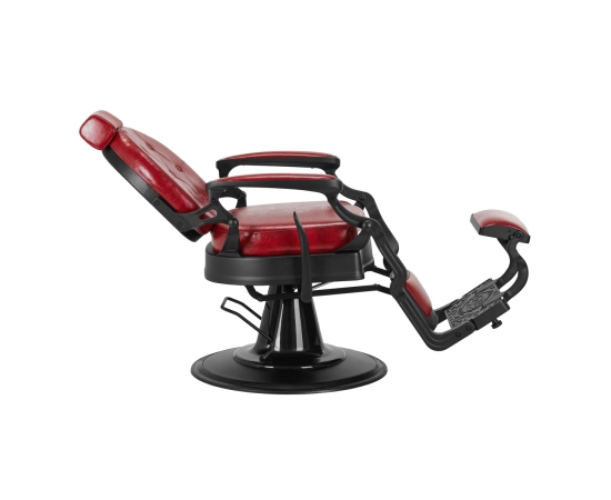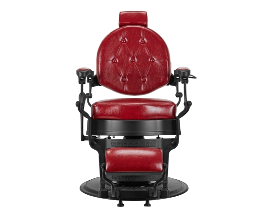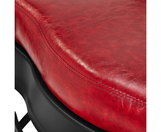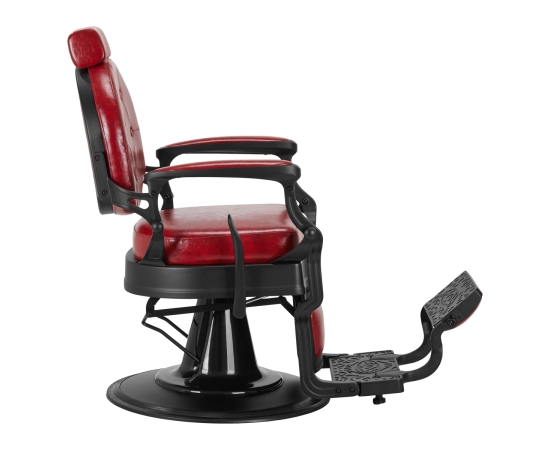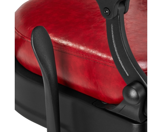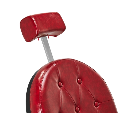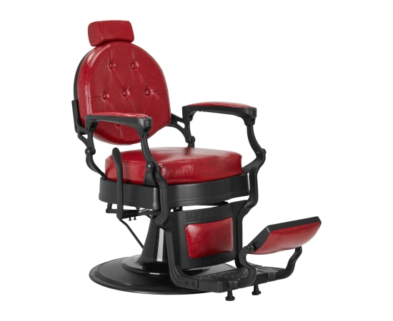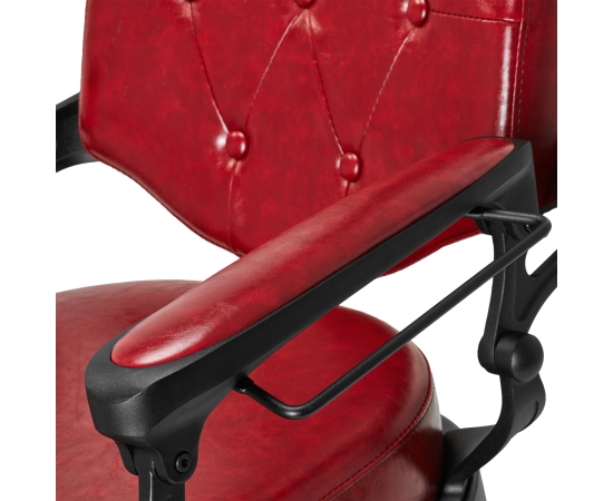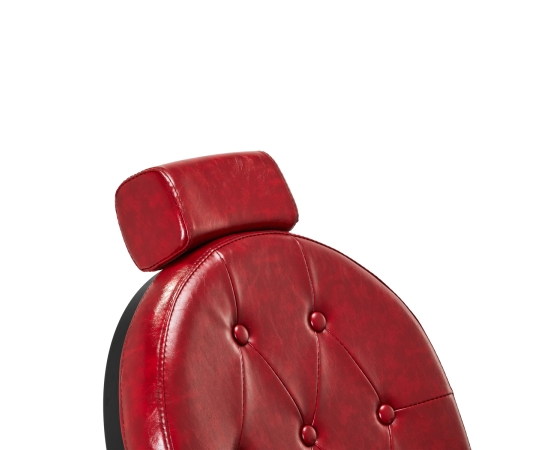 The solid construction of the base ensures stability and high comfort of use. The seat filling is made of durable, deformation-resistant foam and the upholstery is made of pleasant-to-touch synthetic leather with a glossy finish, ensuring the durability of the furniture and its comfortable use for a long time. They also make the equipment resistant to moisture, durable and easy to clean. The covering in shades of red with quilting and decorative buttons gives it a unique character. The chair with a characteristic design, referring to the vintage style, perfectly fits the atmosphere of barbershops, emphasizing their unique atmosphere.
