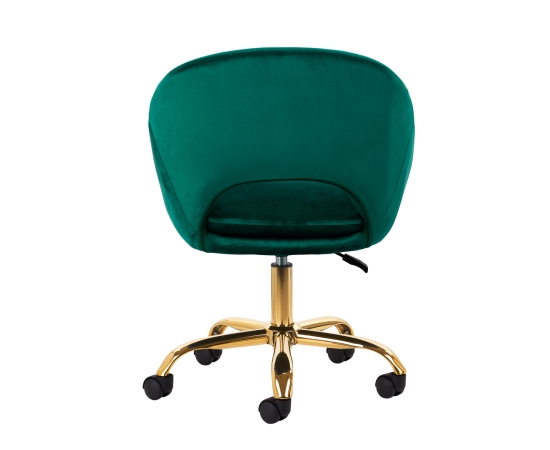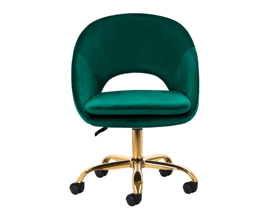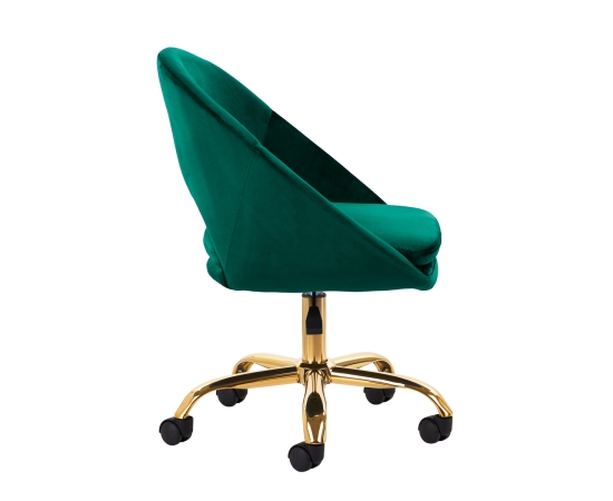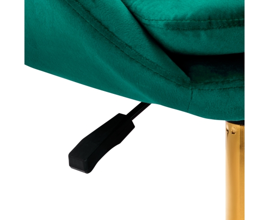 The simple finish makes the furniture eye-catching. The pleasant-to-the-touch, velvet upholstery in shades of green gives it a unique character. The base in shades of gold adds elegance, perfectly matching the velvet, and the functional wheels ensure mobility, making it easier to move the chair around the salon while working. Aesthetics of workmanship, comfort of use and ergonomically profiled backrest make the chair meet the requirements of even the most demanding users.