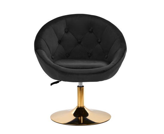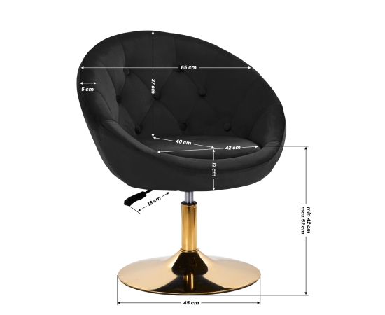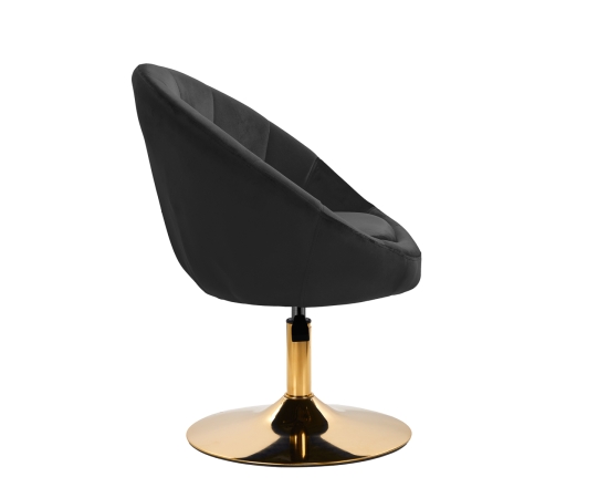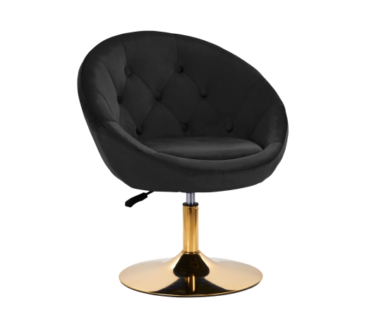 The luxurious finish makes the furniture eye-catching. The pleasant-to-the-touch, velvet upholstery in shades of black and decorative quilting give it a unique character. A stable, round base in shades of gold adds elegance, perfectly matching the velvet. Aesthetics of workmanship, comfort of use, ergonomically profiled backrest and aesthetic quilting make the chair meet the requirements of even the most demanding users.