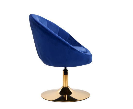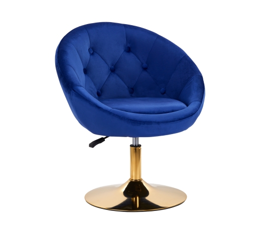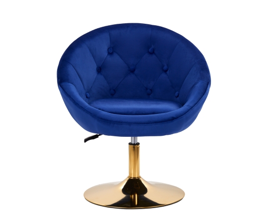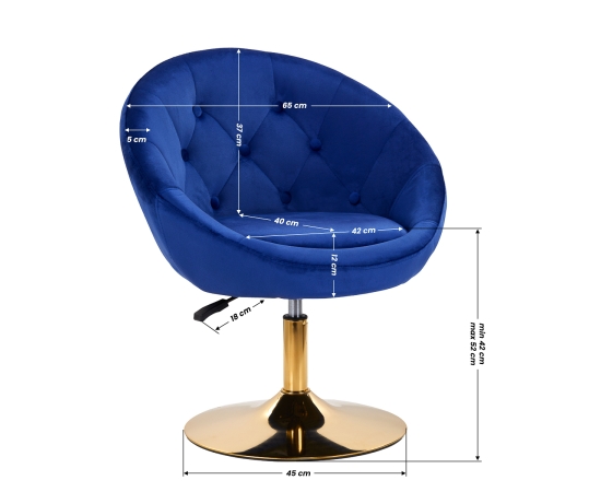The luxurious finish makes the furniture eye-catching. The pleasant-to-the-touch, velvet upholstery in shades of navy blue and decorative quilting give it a unique character. A stable, round base in shades of gold adds elegance, perfectly matching the velvet. Aesthetics of workmanship, comfort of use, ergonomically profiled backrest and aesthetic quilting make the chair meet the requirements of even the most demanding users.