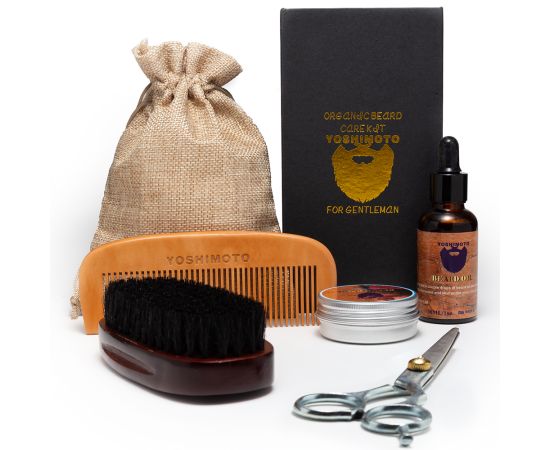 A Yoshimoto "Groomed" készlete két hajformázó terméket és 3 alapvető eszközt tartalmaz egy olyan férfi számára, aki törődik a szakállával.
