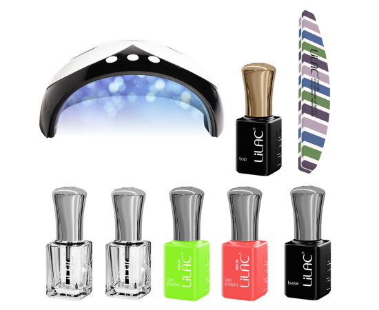 A Gél lakk rajongói a nap bármely időszakában megrendelhetik a Lilac gél lakk szett, Start 6 db gél + UV LED műkörmös lámpa 36 W + körömreszelő, gél lakk kezdő szett, Neon colors, otthoni gél lakk szett terméket.