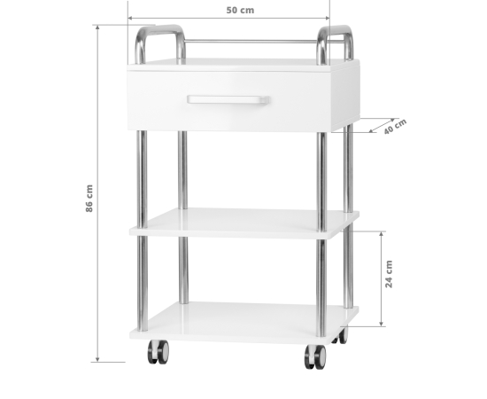 A high-quality podiatry helper is a functional cosmetic piece of furniture on wheels. Thanks to your mobility, you can transport it to other treatment rooms. The assistant has a drawer for tools, accessories and two shelves for a podiatry milling machine or other device.