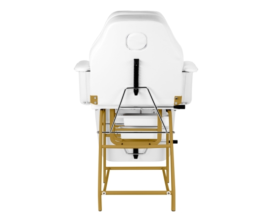 The armrests provide the user with adequate support and comfort during treatments. If necessary, they can be easily removed, so that the person performing the services has easier access to the areas on which he is working at the moment. These elements, which are divided in half, are movable, so they fit well when changing the backrest position.