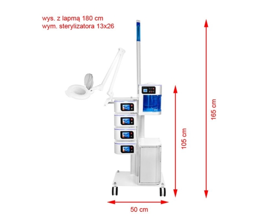thanks to the touch panels and menu in Polish, we are able to turn on the device and select the appropriate treatment options with just one click. It is also not without significance that the disassembled devices can work independently, e.g. on a different workstation, one device is fully capable of handling two or even more workstations.