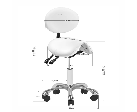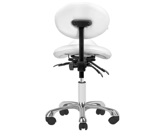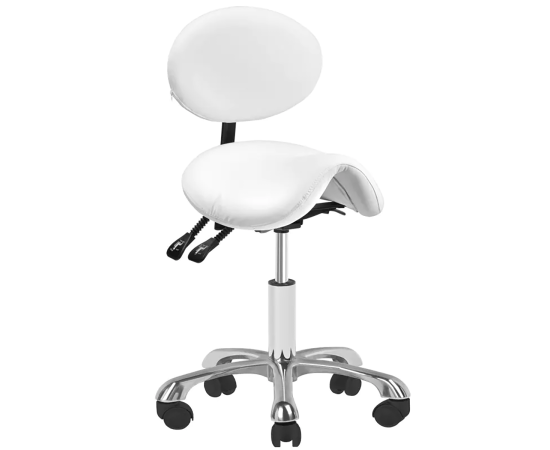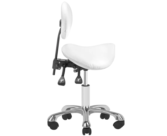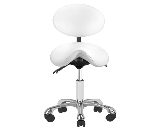 comfortable, exclusive, stable cosmetic stool with a backrest and profiled seat, on a very stable five-arm base