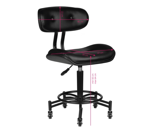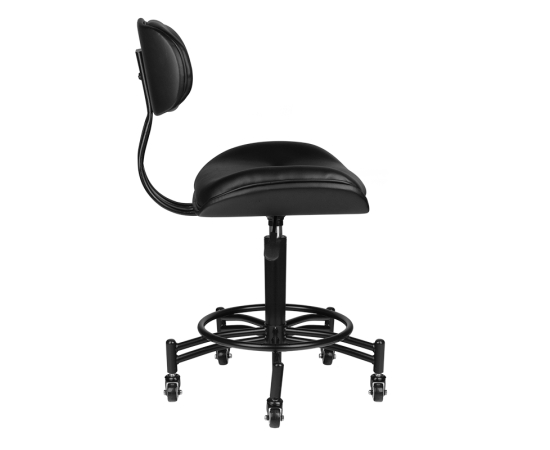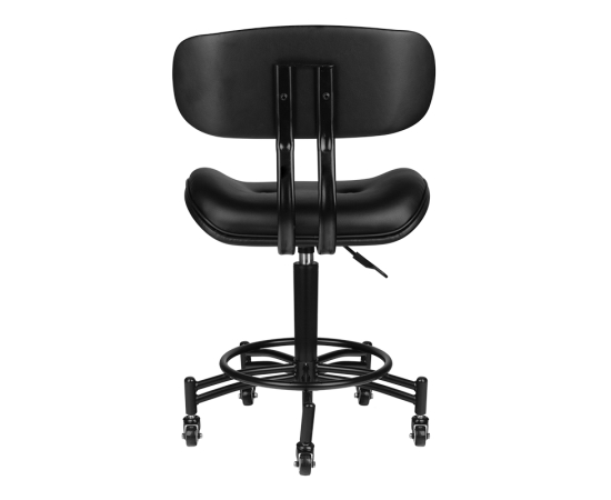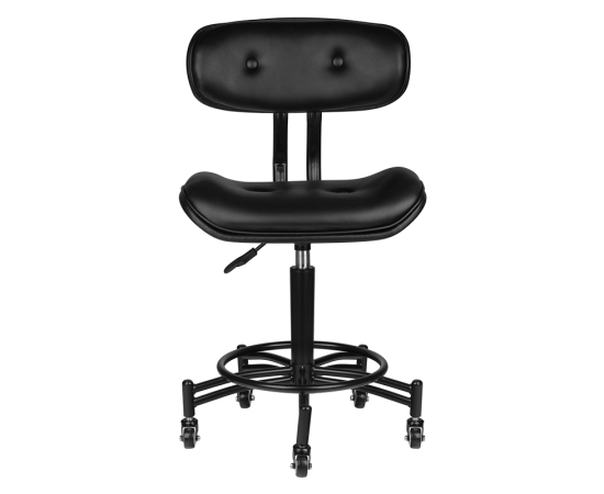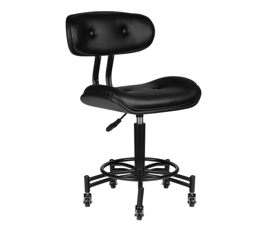 a comfortable stool from the Florence series, perfect for a barber shop, tattoo studio and beauty salons. the armchair is equipped with a five-star base on wheels, in black color.
