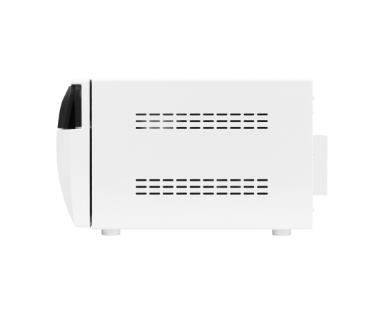 It is a compact device that combines an 23 liter autoclave with a built-in thermal printer. It has LCD display and USB port, which allows you to connect a data carrier to save the results of the cycle. It has 10 fully automatic programs; 7 sterilization programs, 2 test programs and an autoclave cleaning program. In addition, it also has the user program function, which allows complete freedom in selecting parameters. It has an intuitive menu and the user-friendly interface is in English. The preheat and keep warm functions will show up to be very useful, especially when you need to do more programs and you don't want to wait for the device to heat upon starting each program. The Lafomed Compact Line autoclave is distinguished by the availability of quick sterilization programs with the possibility of controlling the drying time. The shortest sterilization program including drying takes only 7 minutes. The device has a built-in clean (distilled) water tank, which is used for sterilization, as well as a used water tank, with the possibility of drainage at the front of the device. Self-diagnosis system will effectively protect against damage and preserve the durability of the device. Additional security is provided by the double door lock system. What distinguishes it from other Lafomed autoclaves is the unusually large capacity of tanks for clean and used water - up to 2.5 liters! Thanks to this, you will not have to frequently add and empty water.